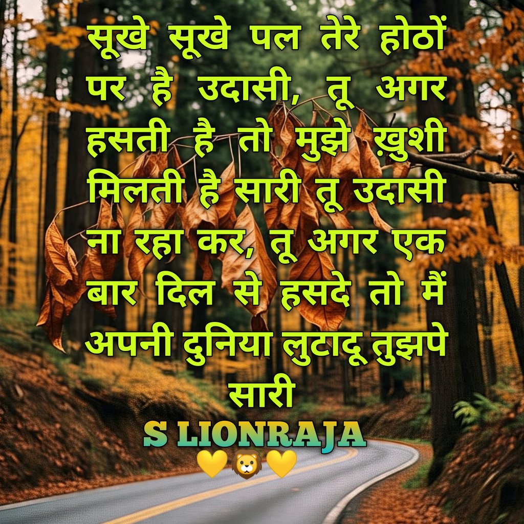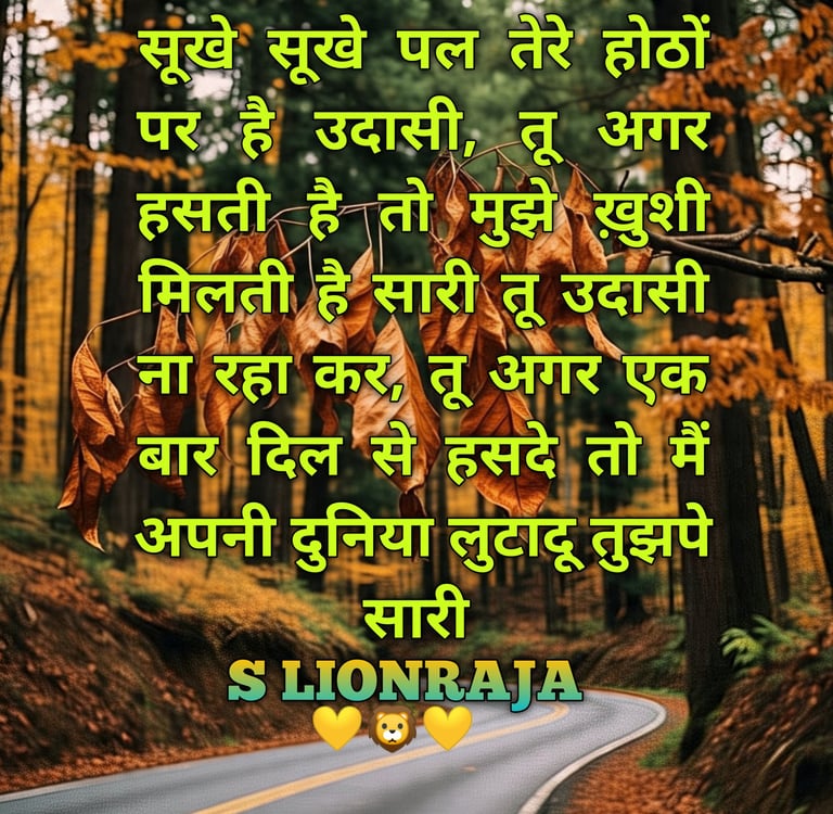 “ SOOKHE SOOKHE PAL TERE HOTHON PAR HAI UDAASI, TU AGAR HASATI HAI TO MUJHE KHUSHI MILATI HAI SAARI TU UDAAS NA RAHA KAR, TU AGAR EK BAAR DIL SE HASADE TO MAIN APANI DUNIYA LUTAADU TUJH PE SAARI