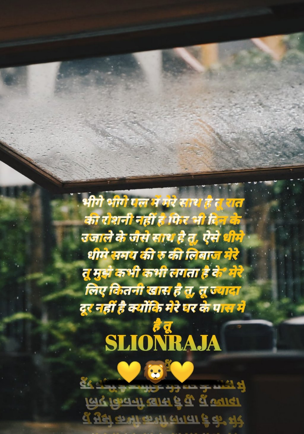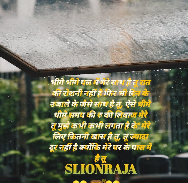 “ BHEEGE BHEEGE PAL ME MERE SAATH hai TU RAAT KI ROSHANE NAHI HAI PHIR BHI DIN KE UJAALE KE JAISE SAATH HAI TU, AISE DHEEME DHEEME SAMAY KI RHU KI LIBAAS MERE TU MUJHE KABHI KABHI LAGATA HAI KI' MERE LIYE KITNI KHAAS HAI TU, TU JYAADA DOOR NAHI HAI KYONKI MERE GHAR KE PAAS MEIN HAI TU